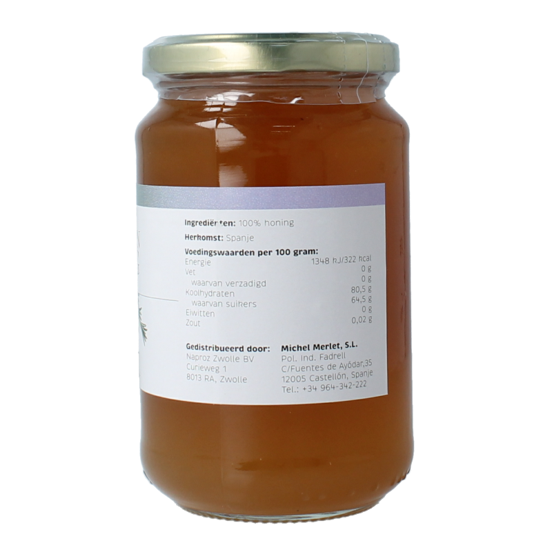 Heerlijke rozemarijnhoning van ‘bijenkoning’ Michel Merlet. Rozemarijnhoning heeft een zoete smaak met soms wat lichtzure tonen en bevat natuurlijke bestanddelen zoals enzymen, mineralen, vitaminen en stuifmeel.