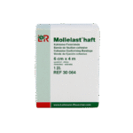 Mollelast haft is lengte-elastisch en overdwars rekbaar, waardoor het goed zit zonder veel plooiing. Daardoor kan de zwachtel ook bij conische lichaamsdelen perfect worden aangebracht en biedt hij zelfs rond gewrichten stevig houvast, dankzij de uitstekende hechting tussen lagen. Ook bij beweging toont het product zich betrouwbaar: geen insnoeren en verschuiven.