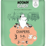 De Moomin Baby luier met speelse opdruk is een ecologisch luier. Dus goed voor het milieu en voor uw baby.