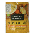 Strooi de inhoud van dit zakje in 500 ml koud water. Breng de soep al roerend met de garde aan de kook. Zet vervolgens de soep 7 min. op een laag vuur zodat het nog zachtjes doorkookt. Regelmatig doorroeren.