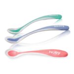 De warmtegevoelige lepeltjes met zachte rand van NûbyTM zijn de perfecte hulp bij het geven van vaste voeding. Zo zijn ze niet enkel zacht voor het gehemelte, maar helpen ze jou om te bepalen wanneer de maaltijd van jouw kleintje te warm is.