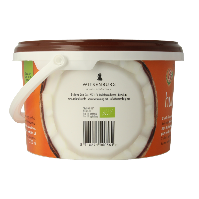Bevat geen transvetzuren en allergenen en kan gemengd worden met bijvoorbeeld olijfolie en sesamolie. Kokosolie is vloeibaar bij een temperatuur >25 C.