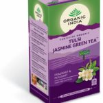 Ocimum sanctum* Heilige basilicum-Krishna Tulsi (18,00%)-Rama Tulsi (17,00%) blad, Camellia sinensis* Groene thee blad (25,0 %), Ocimum gratissimum*Heilige basilicum Vana Tulsi (17,00%) blad, Zingiber officinale* Gemberwortel (7,50%), Matricaria chamomilla* Kamille bloem (5,00%), Foeniculum vulgare* Venkel (5,00%) zaad, Jasminum grandiflorum* Jasmijn bloem (1,00%), Jasmijn natuurlijk aroma (4,50%).