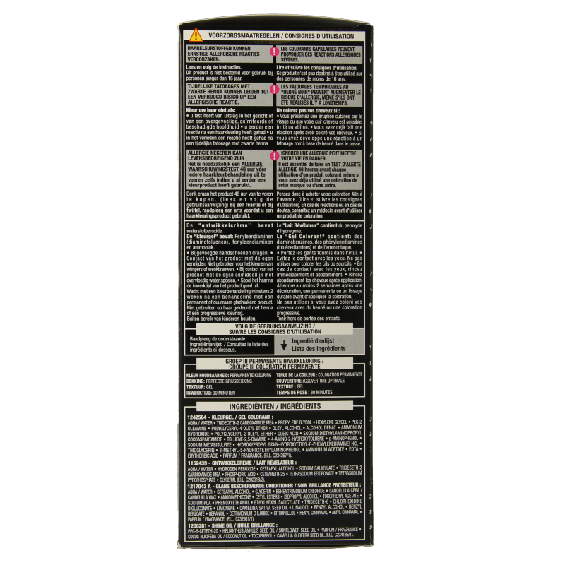 Doe 48 uur vóór het gebruik van een haarkleuringsproduct altijd een allergie waarschuwingstest. Is je haar langer dan tot op je schouders? Gebruik dan twee verpakkingen haarkleuring.
