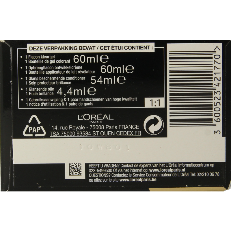 In de verpakking van Préférence zit alles wat je nodig hebt om je haar te kleuren of je haarkleur bij te werken.