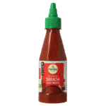 Sriracha-saus is een onmisbare pittige Thaise saus. Ze wordt vervaardigd in het noorden van Thailand met pepers en ter plaatse geteelde aroma”s.