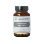 Proviform Vitamine K2 – 360 mcg met K2 van VitalDelta® onderscheidt zich door de keuze voor een uiterst stabiele, volledig natuurlijke vorm van vitamine K2. Deze vorm is zorgvuldig geproduceerd volgens strenge kwaliteitsnormen, waardoor de zuiverheid en biologische beschikbaarheid optimaal behouden blijven.