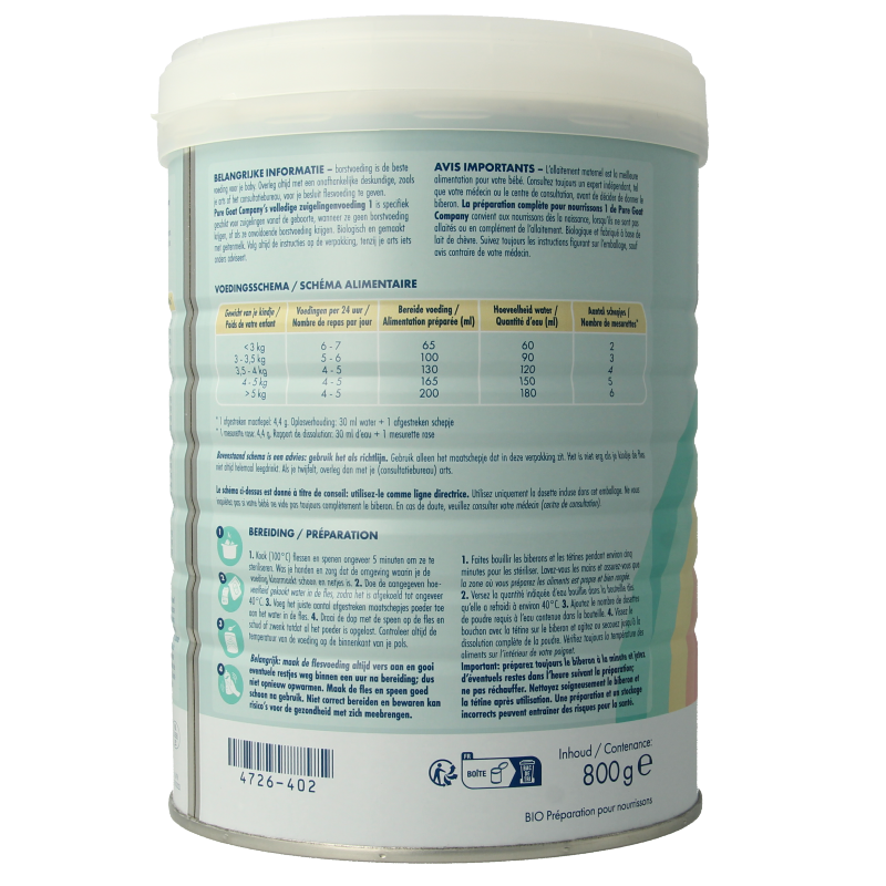 Pure Goat Company”s volledige zuigelingenvoeding is specifiek geschikt voor zuigelingen vanaf de geboorte, wanneer ze geen borstvoeding krijgen, of als ze onvoldoende borstvoeding krijgen.