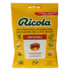 Zoetstof (isomalt), extract (1%) van Ricola 13 kruidenmix, kleurstof (karamel), zoetstof (steviolglycosiden uit Stevia), pepermuntolie, muntolie, menthol.