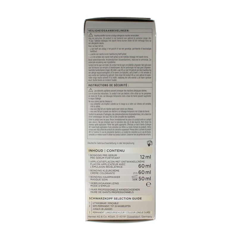 Contact met de ogen vermijden. Bij contact met de ogen onmiddellijk uitspoelen. Niet gebruiken voor het kleuren van wimpers of wenkbrauwen. Na het aanbrengen het haar goed uitspoelen. Geschikte handschoenen dragen. Wij raden aan 48 uur voor het gebruik van deze haarkleuring een allergiewaarschuwingstest uit te voeren (zie bijsluiter), ook al heeft u in het verleden al eerder een haarkleuring gebruikt. Denk eraan het product 48 uur voor gebruik te kopen. Indien enige reactie optreedt of bij twijfel, raadpleeg een arts voordat u uw haar opnieuw kleurt. Buiten bereik van kinderen houden.