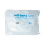 Poedervrije, transparante wegwerphandschoen gemaakt van polyethyleen. Herenmaat.