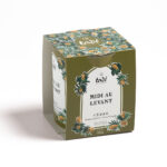 100% biologische plantaardige was van soja en kokosnoot, met de hand gegoten in Frankrijk. De lont is gemaakt van 100% katoen en de verpakking is 100% recyclebaar.