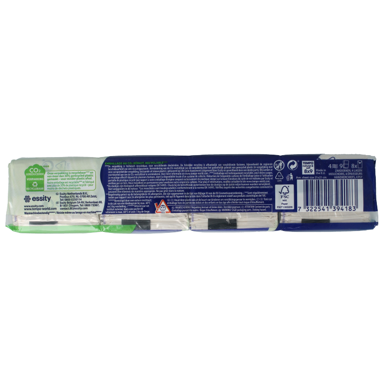 Tempo Natural & soft zakdoekjes 8 x 9 stuks