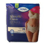 TENA Silhouette Classic High Waist Crème is incontinentieondergoed voor vrouwen. Het voelt aan als normaal ondergoed en is ontworpen voor matig tot zwaar urineverlies. Het ondergoed heeft zowel aan de binnen- als buitenkant een chique crèmekleur en is elegant discreet en stijlvol. Een hoge taille, vrouwelijk ontwerp en soft-fit stof zorgen ervoor dat het broekje op zijn plaats blijft zitten en uitstekende bescherming, draagcomfort en discretie biedt.