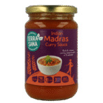 Water (Duitsland), geconcentreerde tomatenpuree* (Italië), ui* (Duitsland), wortelen* (Duitsland), 7% madras curry pasta* (tomaten puree*, uien* zonnebloemolie*, gember*, water, curry* 0,6% (koriander*, venkel*, komijn*, kurkuma*, kaneel*, fenegriek*, curry bladeren*, cayenne*, zwarte peper*, laurier blad*, kruidnagel*), zeezout, kokosbloesemsuiker*, azijn*, knoflook*, kokoscréme*, tamarinde pasta*), zonnebloemolie* (Kroatië), kokosbloesemsuiker* (Indonesië), rijstmeel* (India), zeezout (Portugal).