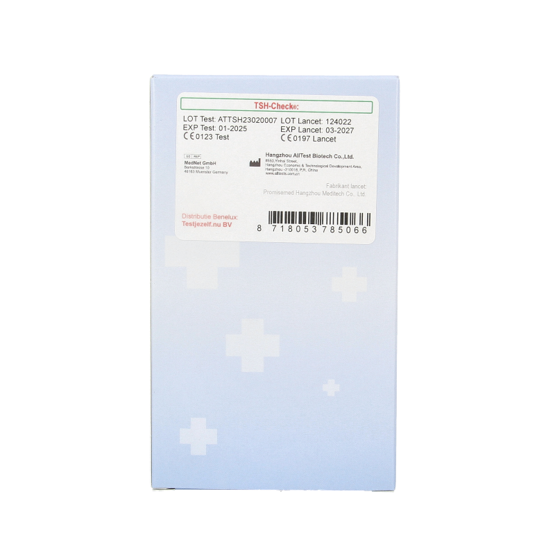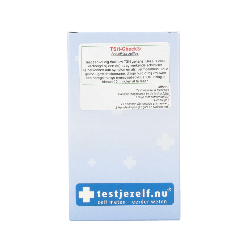 Een eenvoudig thuis uit te voeren test om zelf het TSH gehalte te kunnen meten. Dit schildklier stimulerend hormoon zorgt er normaal gesproken voor dat de productie van de schildklierhormonen (T4 en T3) – welke essentieel zijn voor normale groei en ontwikkeling en effecten hebben op het metabolisme – in de juiste verhouding plaatsvindt.