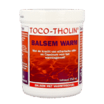 Balsem warm voor de verzorging van spieren en gewrichten. De etherische oliën bevorderen de doorbloeding en maken de spieren soepel. Capsicum verwarmt de spieren en zorgt voor een warmtegevoel op de huid. Dit kan worden verminderd door afwassen met TOCO-THOLIN Was-Lotion. Douchen of transpireren versterkt het warmtegevoel.