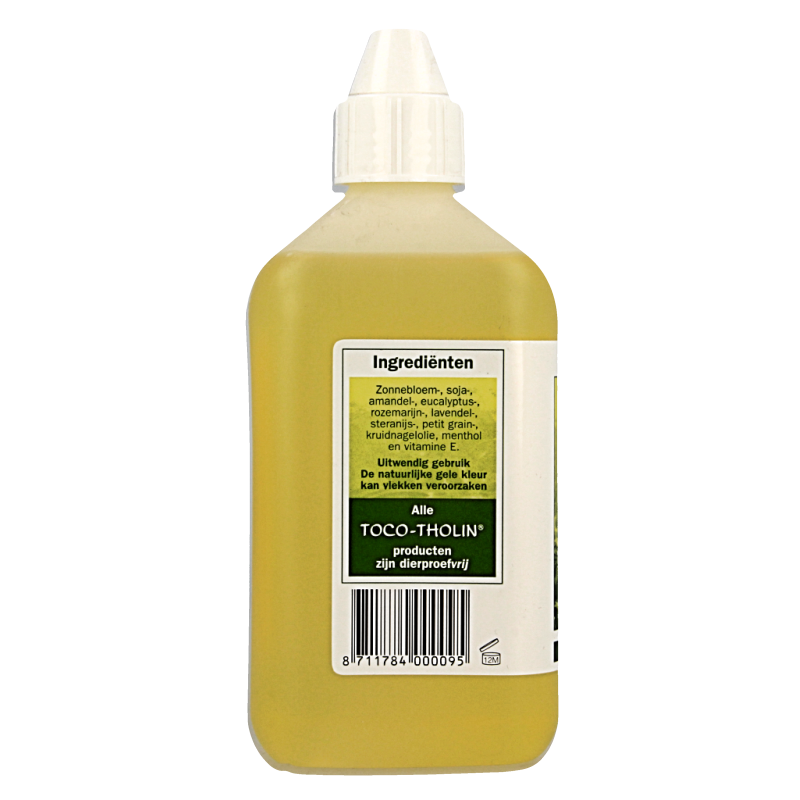 Zonnebloemolie, soja-olie, amandelolie, eucalyptusolie, rozemarijnolie, lavendelolie, steranijsolie, petitgrain olie, kruidnagelolie, menthol, vitamine E.