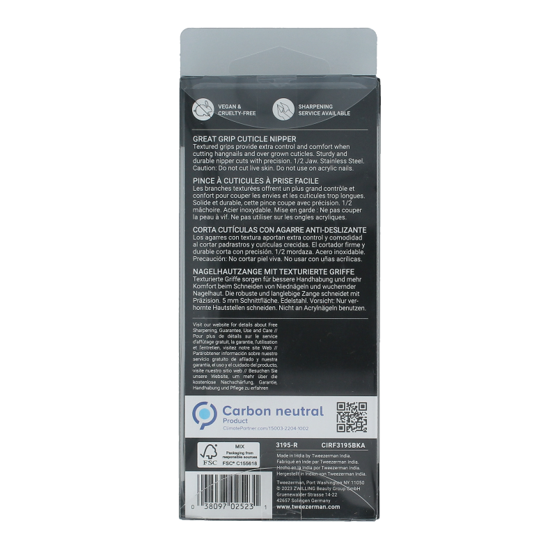 De Wide Grip Cuticle Nipper trimt zorgvuldig de nagelriemen. De scherpe gehoekte mesjes snijden gemakkelijk de nagelriem of nijnagel af zonder aan de huid te trekken. De brede grip maakt het gemakkelijk om de tool te gebruiken en door het gebruik van roestvrij staal is deze tool duurzaam en gemakkelijk om schoon te maken.