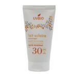Gecertificeerd Biologisch Sun Milk SPF 30 UVBIO met wortelextract, kokosolie en karanja olie. Deze ingrediënten geven een hoge natuurlijke bescherming tegen UVA en UVB straling. Dankzij de minerale filters is deze Bio gecertificeerde zonnecrème respectvol voor de koraalriffen. Het grote voordeel? Het laat GEEN witte strepen achter!