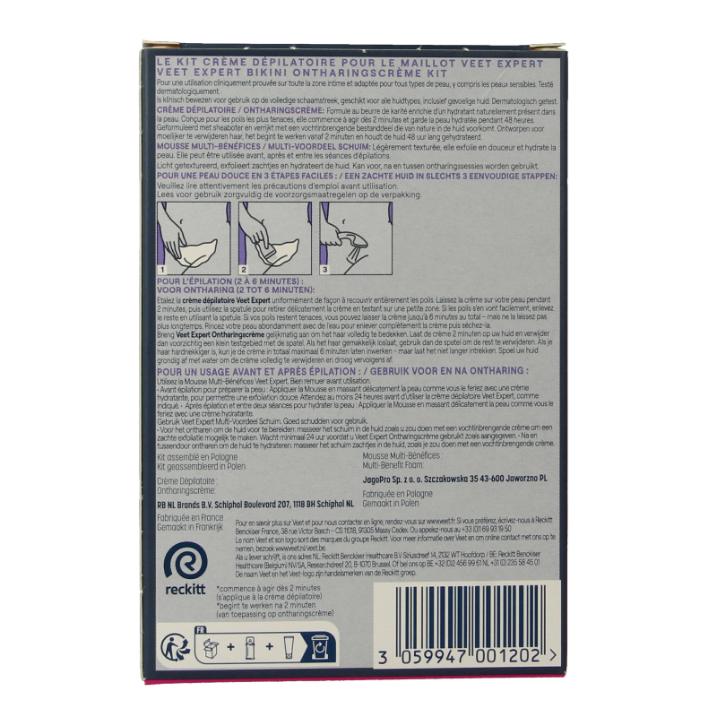 Gebruik Veet Expert Multi-Voordeel Schuim. Goed schudden voor gebruik.