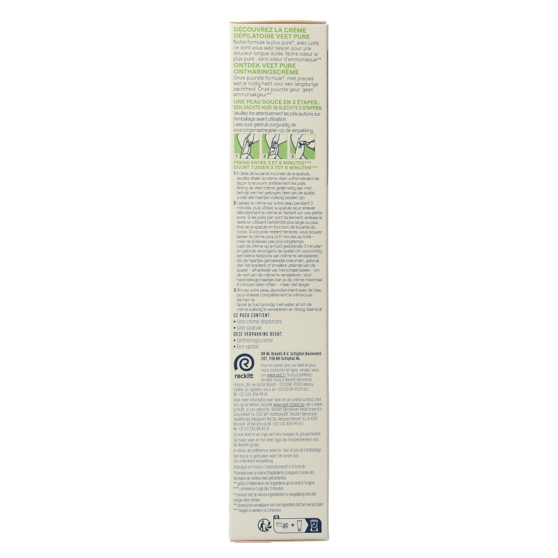 Ontdek de Minima™ ontharingscrème van Veet: een formule met 35% minder chemische ingrediënten* voor een zijdezachte huid met een frisse parfum. Deze verpakking bevat 1 creme tube 200ml en 1 spatel.