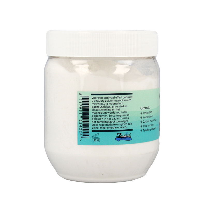 Vitacura ZuiveringszoutVitaCura zuiveringszout Ingrediënten (INCI)Natrium bicarbonaat GebruikIn bad 100 tot 200 gram oplossen. Voetenbad 1 eetlepel. BewaaradviesVerpakking goed afsluiten.