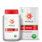 OPC 100 mg van Vitals bevat een hoog gehalte oligomere proanthocyanidinen (OPC’s) uit druivenpitten. Dit zijn bioflavonoïden, opgebouwd uit eenheden catechine en epicatechine. ‘Oligomere’ geeft aan dat het hierbij om specifieke proanthocyanidinen gaat met een korte ketenlengte. Deze hebben namelijk een betere biologische beschikbaarheid dan proanthocyanidinen met een langere keten.
