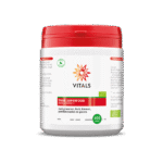 Greens 42% (spirulina*, sap van tarwegras*, sap van gerstegras*, chlorella*, brandnetel*), fruit 36% (appel*, acerola- extract*, blauwe bosbes* [Vaccinium myrtillus], blauwe bes* [Vaccinium myrtilloides], cranberry* [Vaccinium macrocarpon], groente 17% (wortel*, biet*, tomaat*, peterselie*, spinazie*, boerenkool*, groene kool*), paddenstoelen en kiemen 5% (boerenkoolkiemen*, broccolikiemen*, reishi mycelia* [Ganoderma lucidum], shiitake mycelia* [Lentinula edodes], cordyceps mycelia* [Cordyceps militaris], maitake mycelia* [Grifola frondosa], bloemkoolkiemen*), enzymen (amylase, cellulase, lipase, protease, bromelaïne, lactase, papaïne; bevat SULFIET)