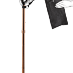 De wandelstok kan in hoogte worden versteld en gemakkelijk ingeklapt worden. De wandelstok heeft een houten handvat en wordt geleverd met een opbergtasje en polsbandje.