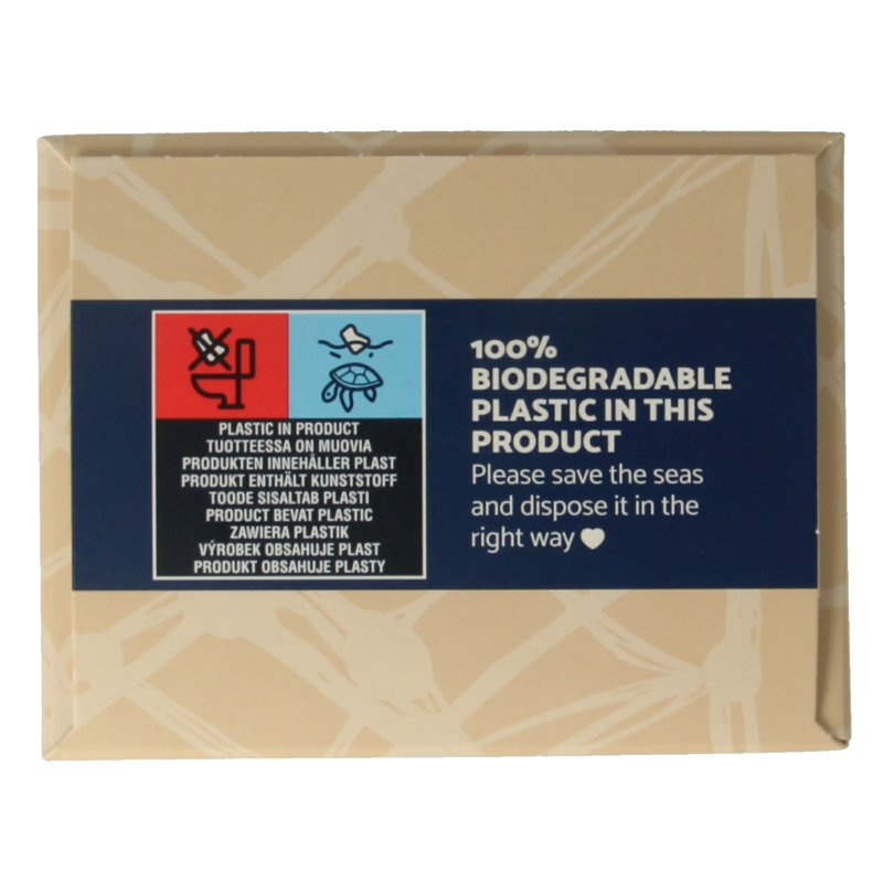 buitenlaag is gemaakt van organisch katoen en de binnenlaag enkel van pure cellulose, 100% chloorvrij (geen SAP), uit gecertificeerde Scandinavische bossen. Dit betekent dat de inlegkruisjes biologisch afbreekbaar en composteerbaar zijn. Zelfs aan de verpakking is gedacht. Deze is gemaakt van ‘’biobased’’ materiaal, composteerbaar en recyclebaar (afkomstig uit suikerriet).