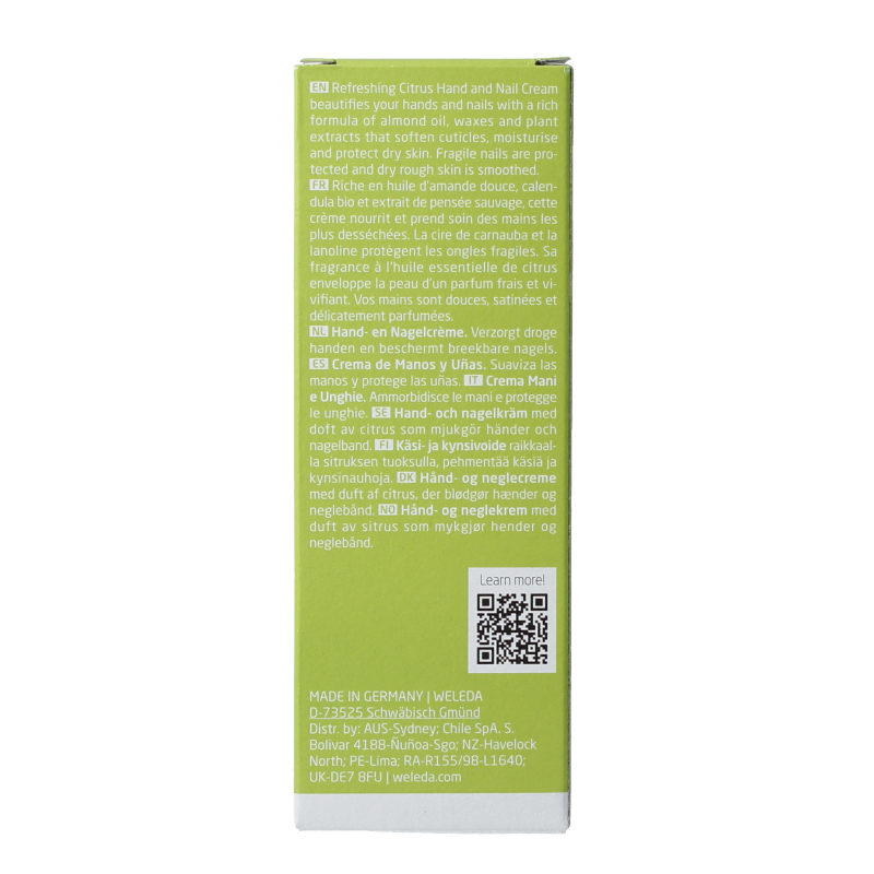 Deze rijke crème ondersteunt de groei van gezonde, mooie nagels en herstelt de natuurlijke beschermlaag van de huid. Resultaat: soepele en zachte handen met verzorgde nagels. Met frisse citrusgeur.
