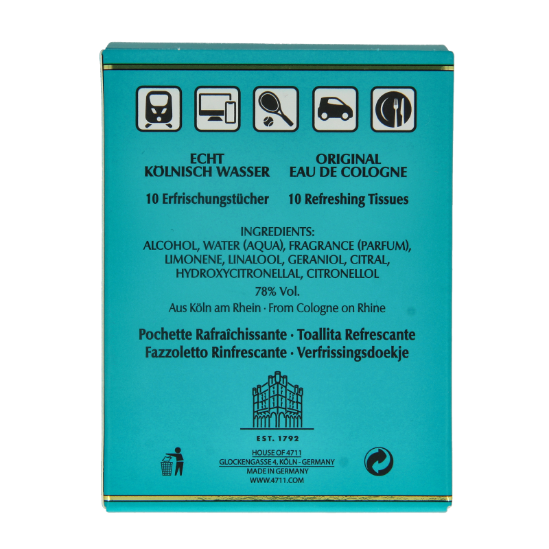 Handige meeneemverpakking met 10 verfrissingsdoekjes.