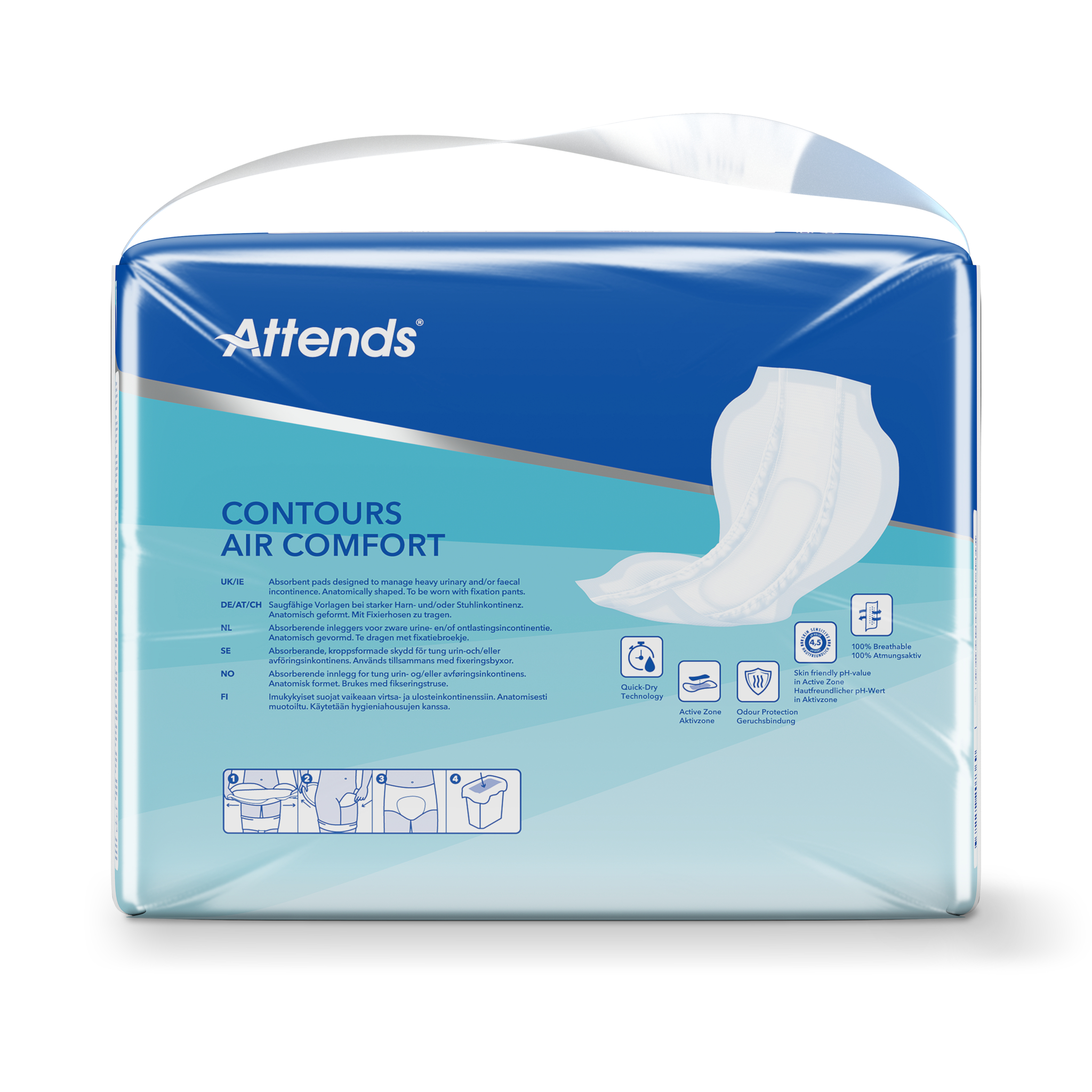 Deze inlegger is ontworpen voor mensen die geen controle hebben over hun blaas of darmen. Attends Contours kan meerdere blaasledigingen opvangen.