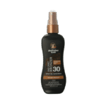 Alle Australian Gold SPF producten in de donkere flacons bevatten hoogwaardige natuurlijke bronzers. De Australian Gold “SPF 30 Spray Gel met bronzer” zonnebrandspray beschermt perfect tegen UVA en UVB en trekt snel in. En dankzij de natuurlijke karamel bronzers word je ook nog eens een stuk sneller en dieper bruin. Bevat o.a. aloë Vera, vitamine E, Australische Tea Tree olie en zonnebloemzaadextracten zodat je huid niet alleen goed beschermd is, maar ook nog eens uitstekend verzorgd wordt. Plakt niet, is niet vet, zweet- en waterbestendig. En het ruikt ook zo lekker!