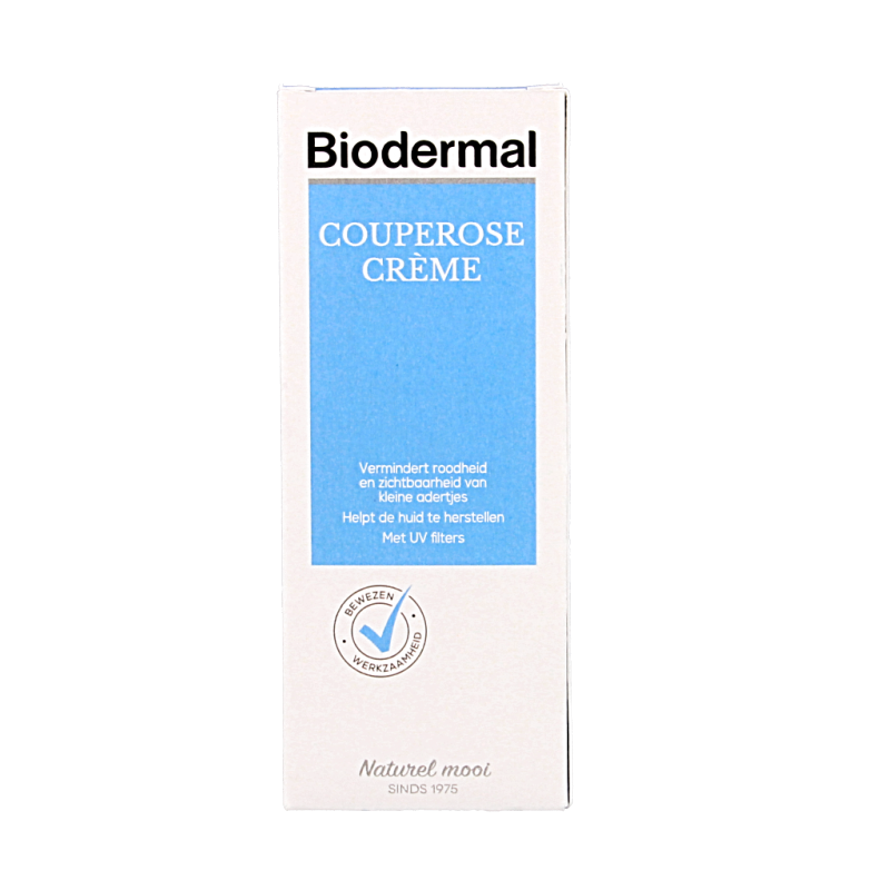Couperose crème van Biodermal biedt een effectieve behandeling van huidproblemen zoals rosacea en couperose. De crème herstelt de huidbarrière en vormt een beschermende laag die ondersteuning biedt tegen invloeden van buitenaf. De couperose crème heeft een kalmerende werking op de rode huid en is niet vet.