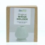 De Bamboo Whisk Holder of houder is de perfecte aanvulling voor de Bamboo Whisk of bamboe klopper. Na gebruik kan je de bamboe klopper gemakkelijk afwassen met wat water en deze op de groene en porseleine houder plaatsen. De bamboe klopper droogt mooi op en zijn originele vorm wordt zo gemakkelijk behouden.