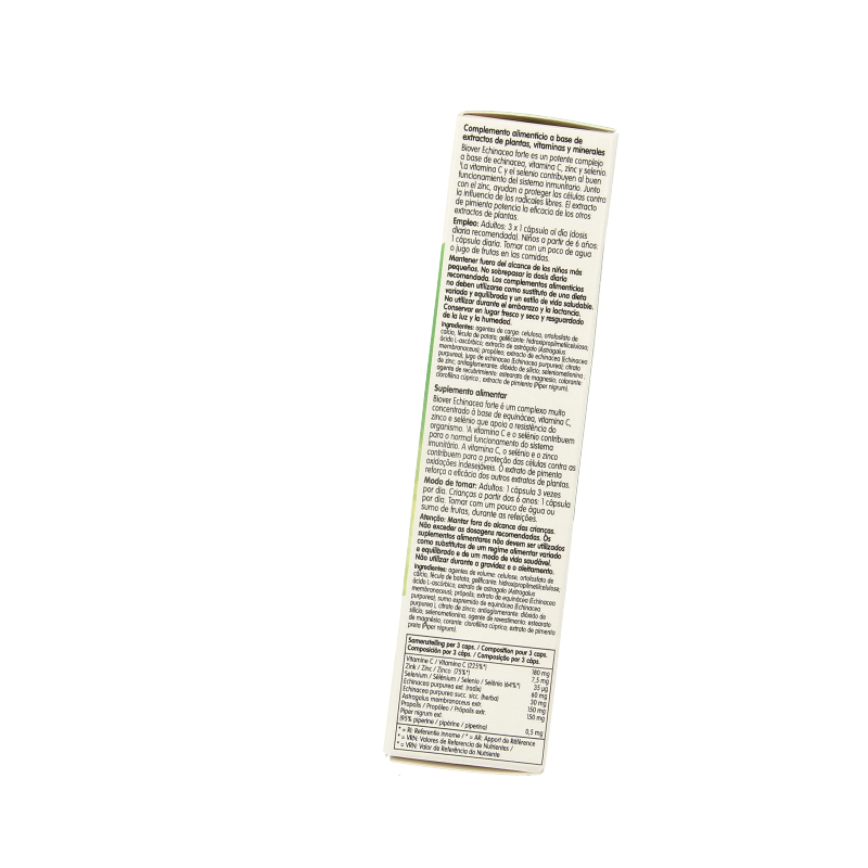 Vulstoffen: cellulose, calciumfosfaat, aardappelzetmeel, geleermiddel, hydroxypropylmethylcellulose, L-ascorbinezuur, astragalusextract (Astragalus membranaceus), propolis, echinacea-extract (Echinacea purpurea), echinaceaperssap (Echinacea purpurea), zinkcitraat, antiklontermiddel: siliciumdioxide, selenomethionine, glansmiddel: magnesiumstearaat, kleurstof: koperchlorofylline, zwarte peperextract (Piper nigrum).
