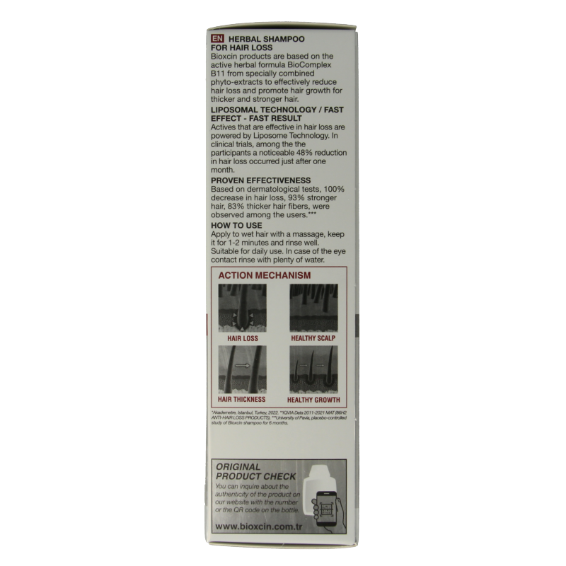 Bioxcin producten zijn gebaseerd op de actieve kruidenformule BioComplex B11 van speciaal gecombineerde fyto-extracten om haaruitval effectief te verminderen en de haargroei te bevorderen voor dikker en sterker haar.