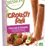 Bisson Crousty Roll met heerlijke chocolade- & hazelnootvulling. Verpakt per 2 stuks. Hierdoor blijven de rolletjes krokant en zijn ze ook makkelijk mee te nemen. Zonder palmolie, glutenvrij en biologisch.