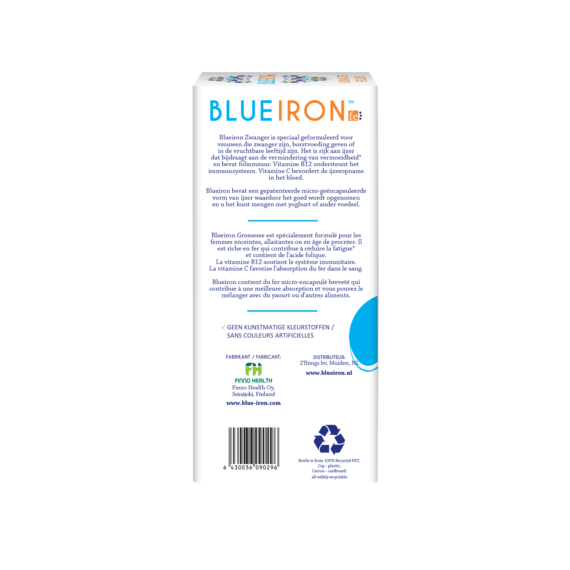 Blueiron bevat een gepatenteerde micro-geencapsuleerde vorm van ijzer. Hierdoor wordt het ijzer wordt makkelijk opgenomen en is het vriendelijk voor de maag. Het product is glutenvrij en geschikt voor veganisten.