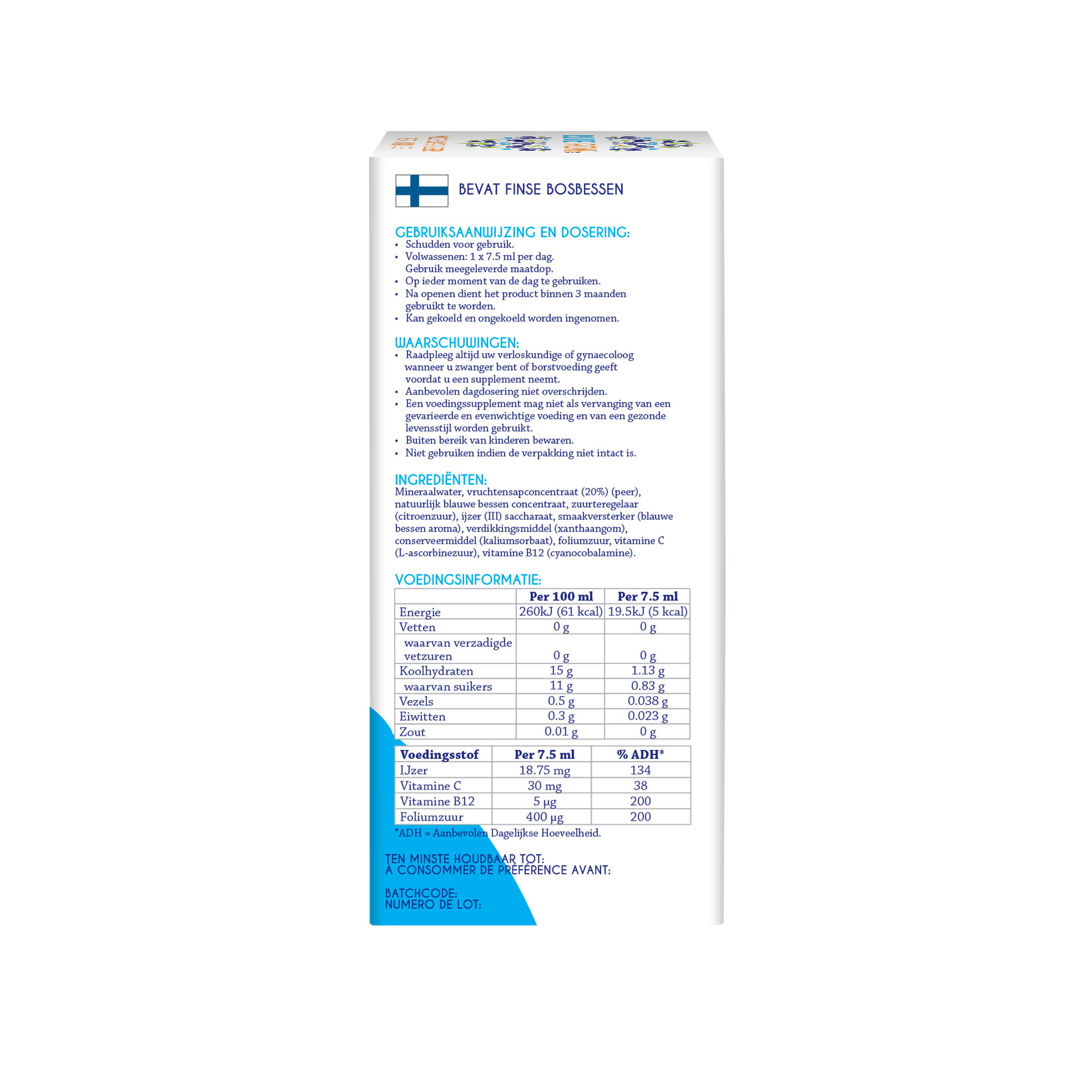 Elke fles Blueiron bevat Scandinavische blauwe bessen concentraat voor een geweldige smaak.