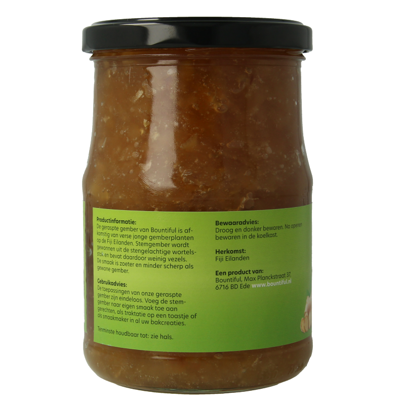 De geraspte gember van Bountiful zijn afkomstig van verse jonge gemberplanten op de Fiji Eilanden. Stemgember wordt gewonnen uit de stengelachtige wortelsstok en bevat daardoor weinig vezels. De smaak is zoeter en minder scherp als gewone gember.