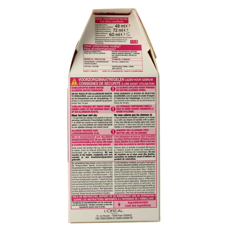 De kleurcreme bevat resorcinol, fenyleendiamininen (diaminotoluenen).