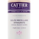 Verzachtende micellaire gel met roze klei en bruin lijnzaad.