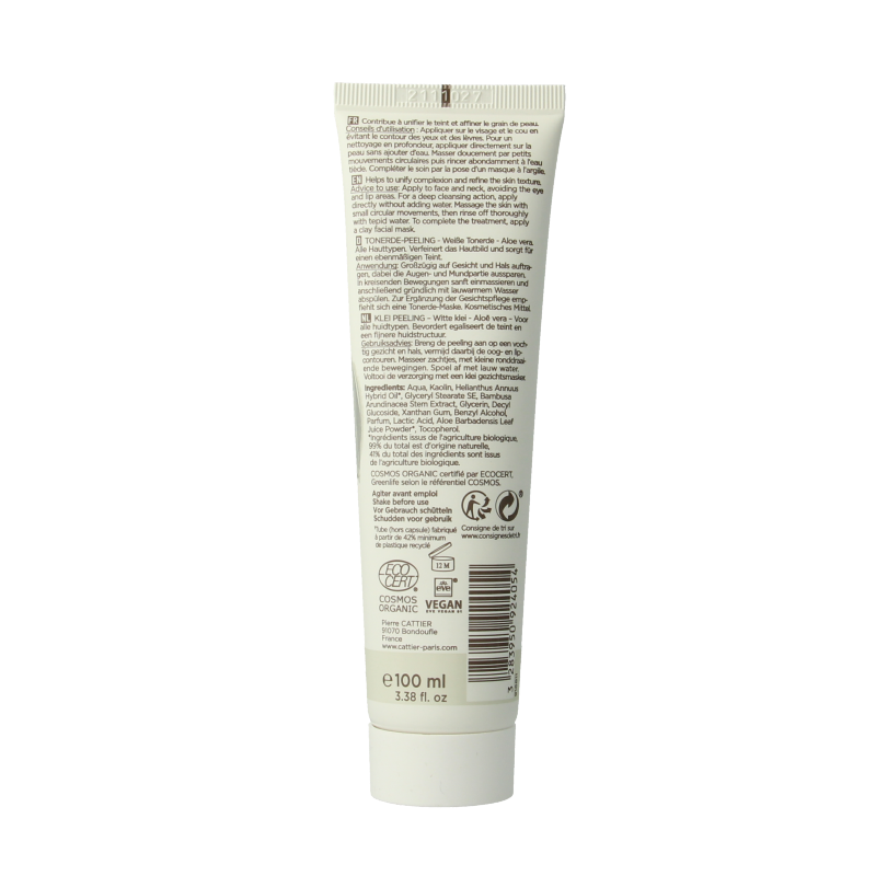– Witte klei (kaolien): neutrale klei. Zeer zacht, het remineraliseert de huid zachtjes. Bevat voornamelijk silicium (40%), aluminium (35%) en kalium (3%).