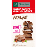 Melkchocolade (cacao: 38% minimum) (zoetstof maltitol, volle MELKpoeder, cacaoboter, cacaomassa, emulgator: SOJAlecithine, natuurlijk vanillearoma), HAZELNOOTpasta (6,00%)