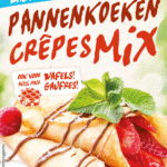Bereiding Pannenkoeken – 400g mix (in de verpakking) – 300ml melk – 3 eieren Doe de eieren in een kom en klop deze los. Voeg de mix en de helft van de melk toe. Roer goed. Voeg de rest van de melk toe en roer tot een glad mengsel. Smelt wat boter of margarine in een pan en bak de pannenkoeken lang genoeg, tot ze aan beide kanten een goudbruine kleur hebben. Doe regelmatig opnieuw boter of margarine in de pan. Wafels – 400g mix (in de verpakking) – 125g gesmolten boter of margarine -75g suiker – 2 eieren Doe alle ingrediënten in een mengkom en roer tot een smeuïg deeg. Plaats het deeg in de koelkast voor ongeveer 1 uur. Smeer het wafelijzer in met wat boter, voeg het deeg toe en wacht tot de wafels een goudbruine kleur hebben. Laat ze afkoelen op een rooster.