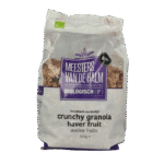 92,0% HAVERcrunchy (74,5% HAVERvlokken*, ruwe rietsuiker*, zonnebloemolie*, rijstpops* (rijstebloem*, GERSTemout*, zeezout), rijststroop*, kokosrasp*), 5,0% rozijnen* (5,0% rozijnen*, zonnebloemolie*), 2,0% bramen*, 0,5% gevriesdroogde passievrucht* (0,3% passievruchtconcentraat*, 0,2% appelpureeconcentraat*), 0,5% frambozen*.