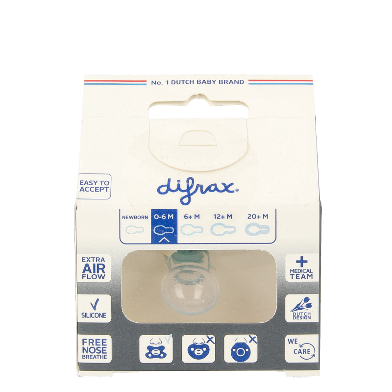 De Difrax Fopspeen Natural 0-6 M voldoet aan de zuigbehoefte van je baby. Deze fopspeen is symmetrisch, wat je baby snel herkent en makkelijk(er) zal accepteren. De grootte van het fopspeen schildje en die van het zuiggedeelte zijn speciaal ontwikkeld voor pasgeboren baby’s tot 6 maanden.
